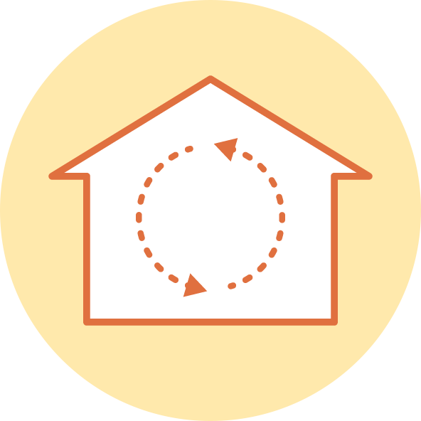 「熱交換式換気扇」により、外気を天井裏から室温に近づけて取り入れ、壁内通気層を上昇しながら、クリーンな空気が家全体を循環します。加えて床下に敷設した自然素材の「ファースシリカ」がホルムアルデヒドやタバコの臭い、有機系ガスの汚染物質を吸着し、シックハウスなどの問題を低減。